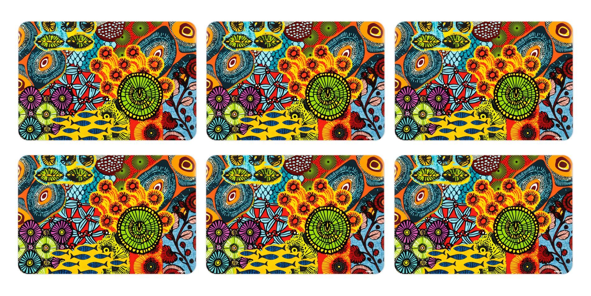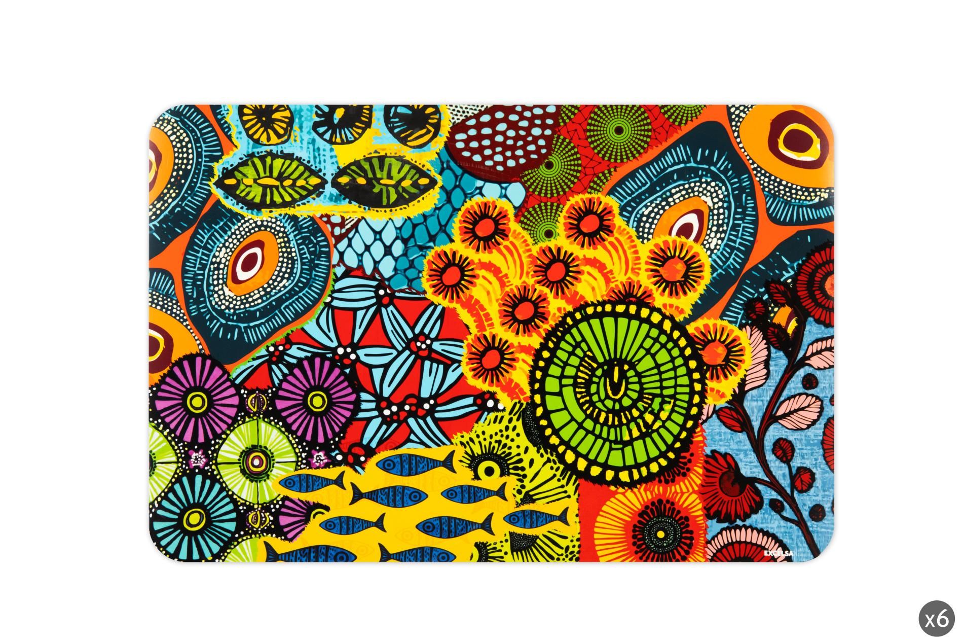 6 tovagliette, rettangolari, stile africano