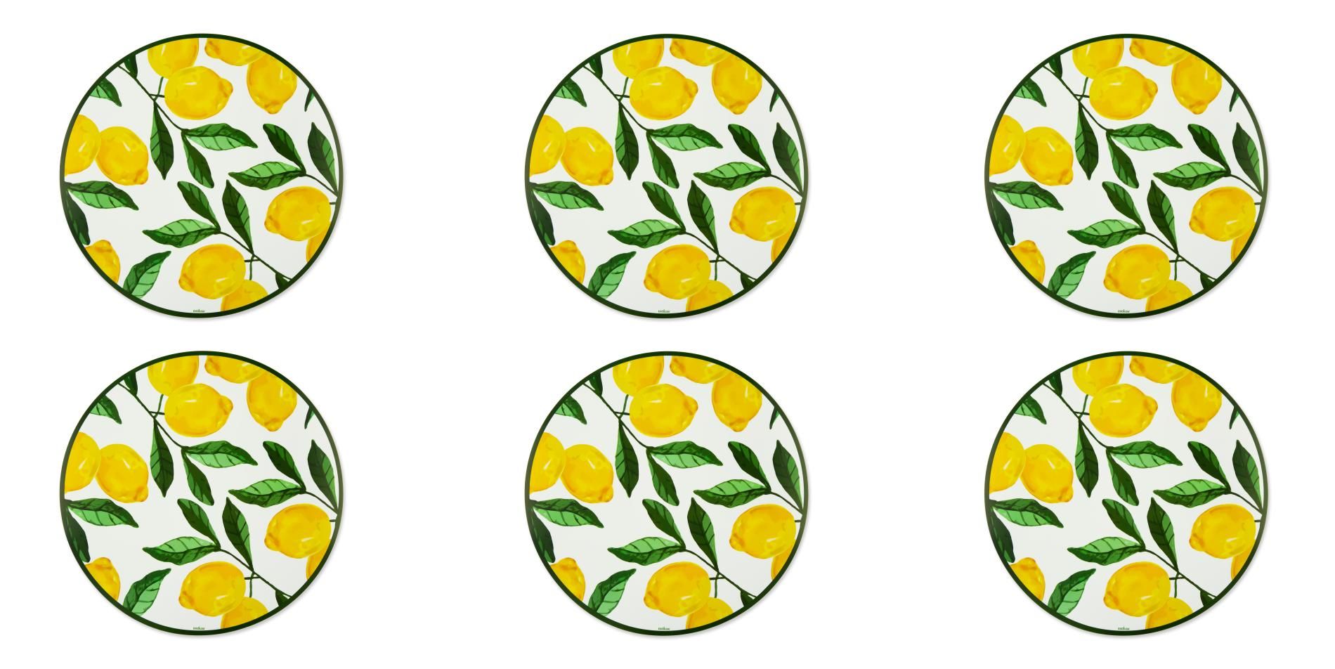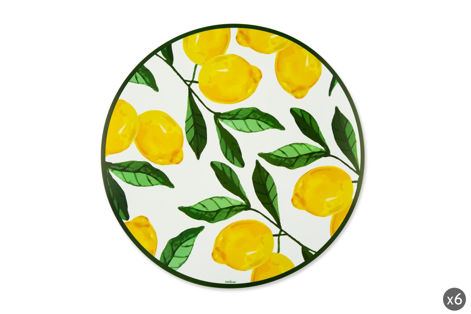 - 6 tovagliette, tonde, 38 cm, con limoni