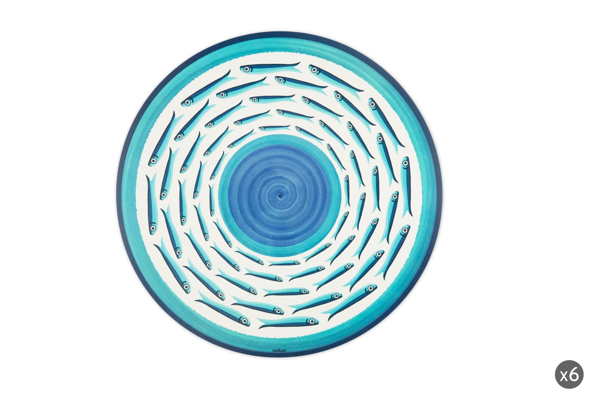 - 6 tovagliette, tonde, 38 cm, stile marino