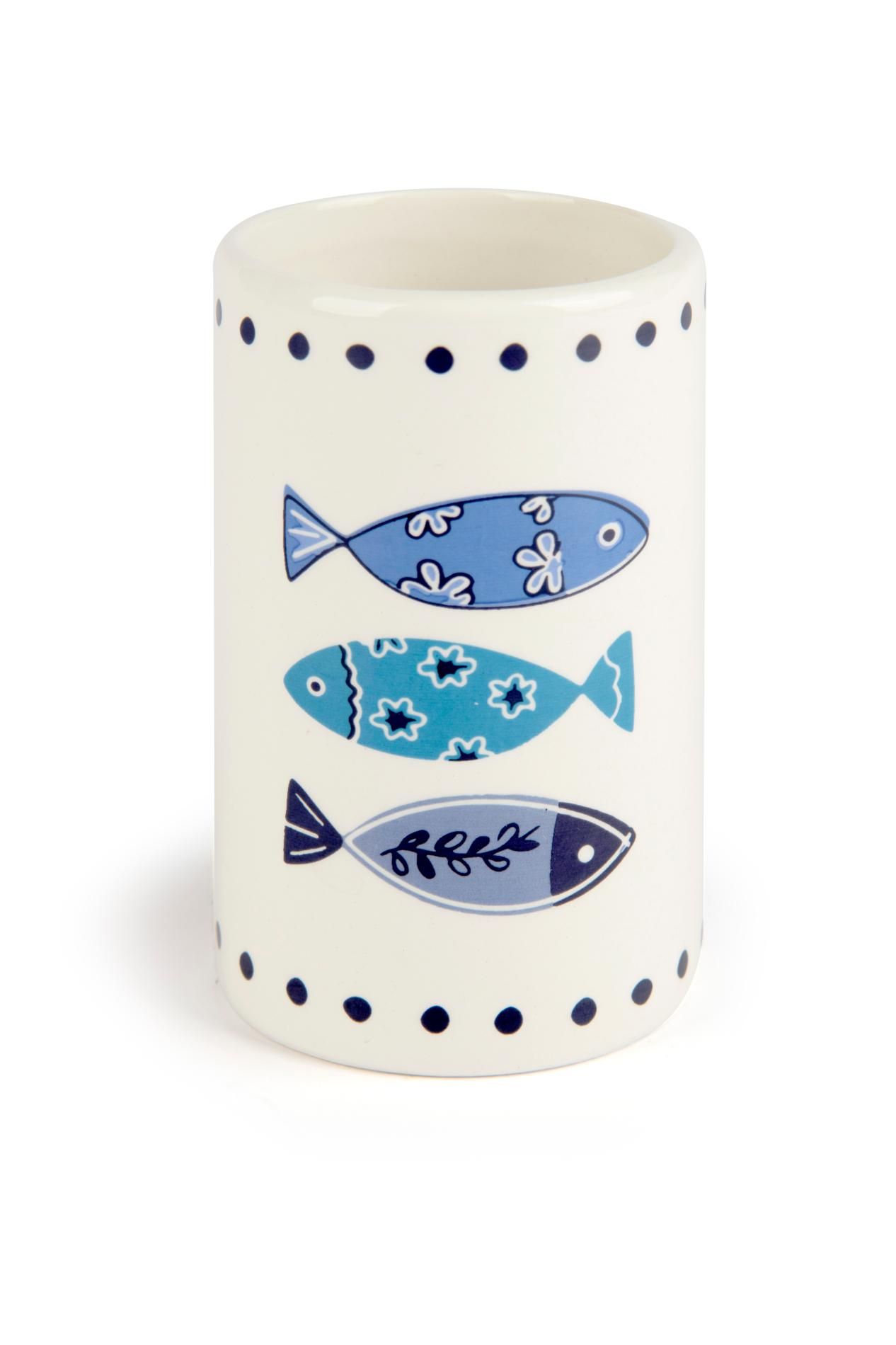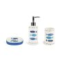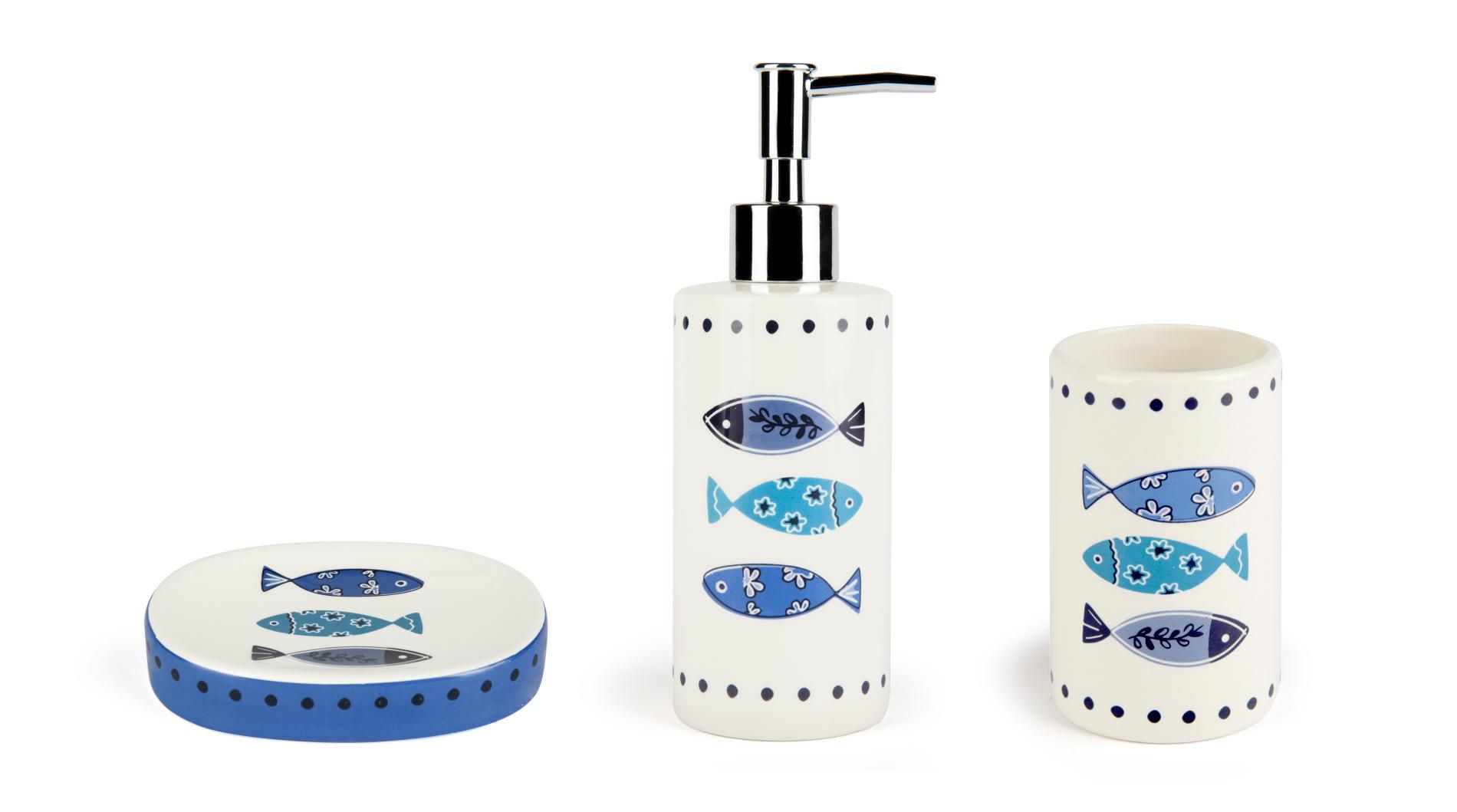 Il set bagno Ocean di Excélsa si compone di 3 accessori con funzione di porta saponetta, porta spazzolini da denti e porta sapone liquido. Ogni accessorio è finemente decorato con l'omonima fantasia che contraddistingue lo stile Ocean come mediterraneo e marinaro.