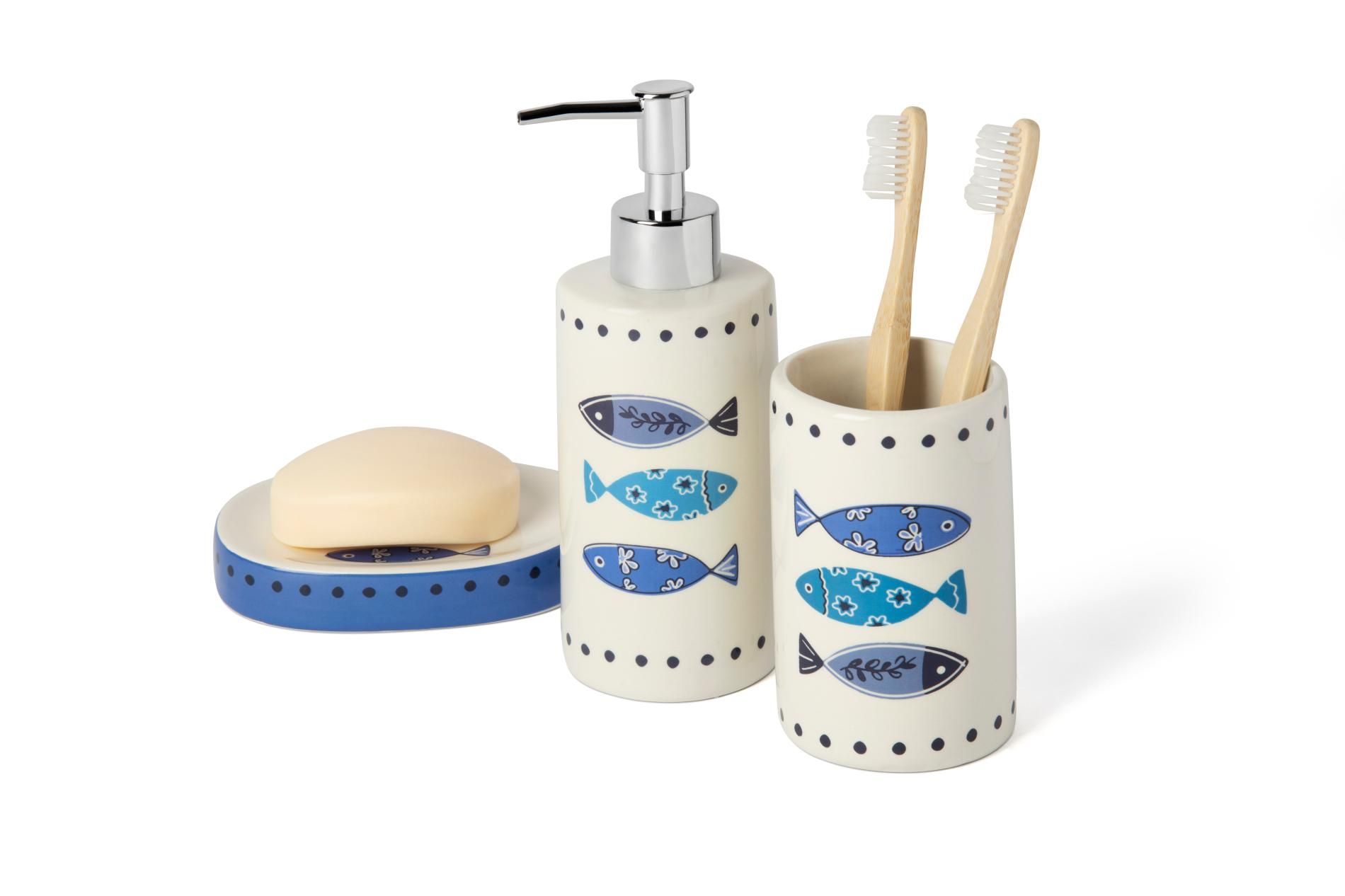 Accessori bagno in set, 3 pezzi, pesci, mare