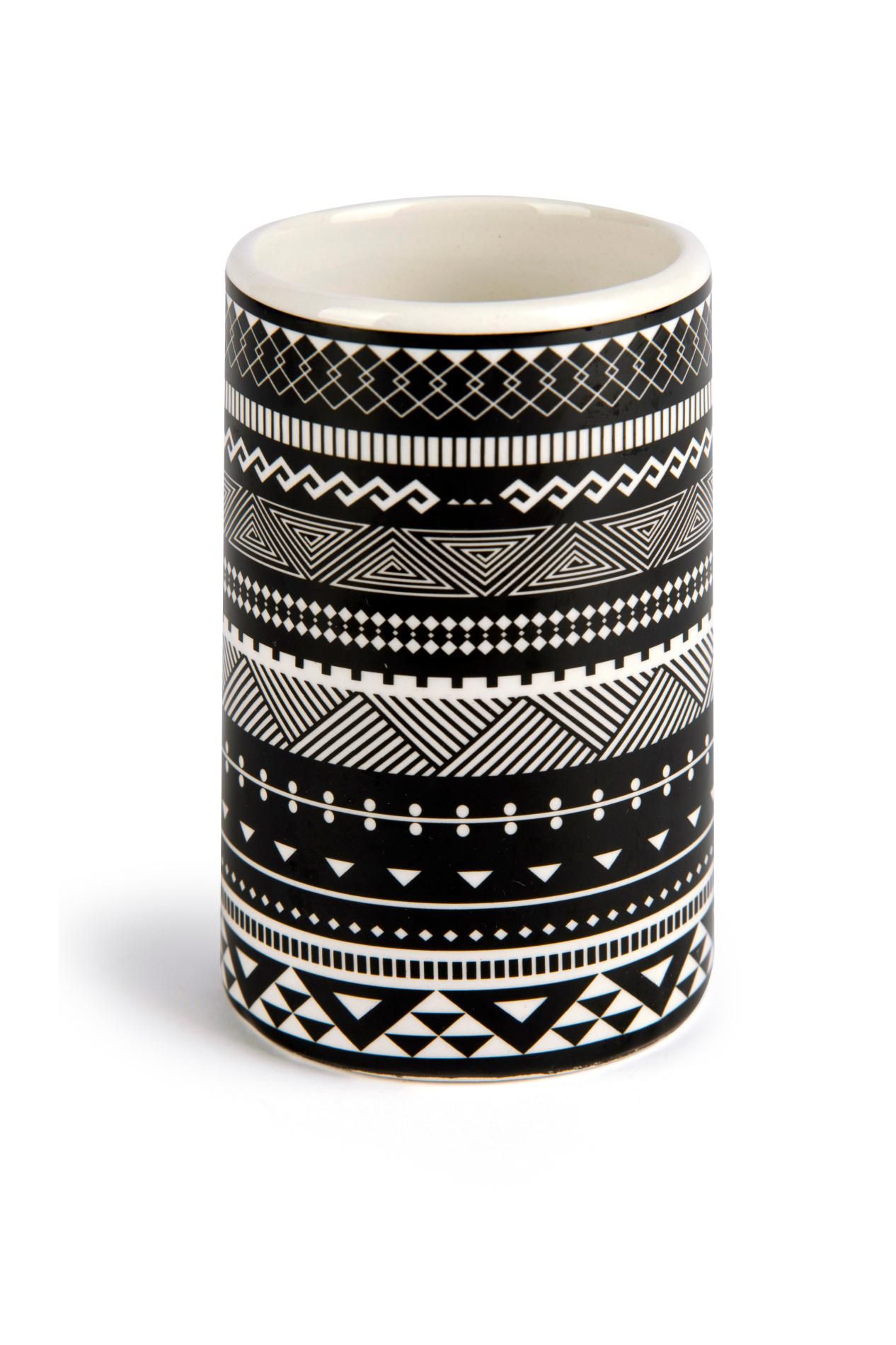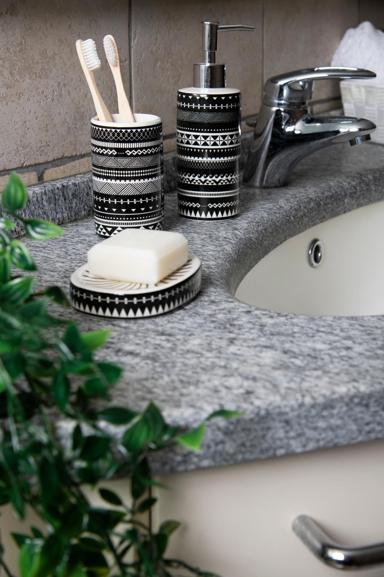 Accessori bagno in set, 3 pezzi, stile etnico, bianco, nero