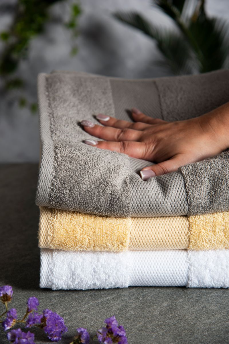 Grazie alla coordinabilità l'asciugamano viso può essere abbinato acquistando quello ospite e/o il telo doccia (come mostrato nella fotografia).
