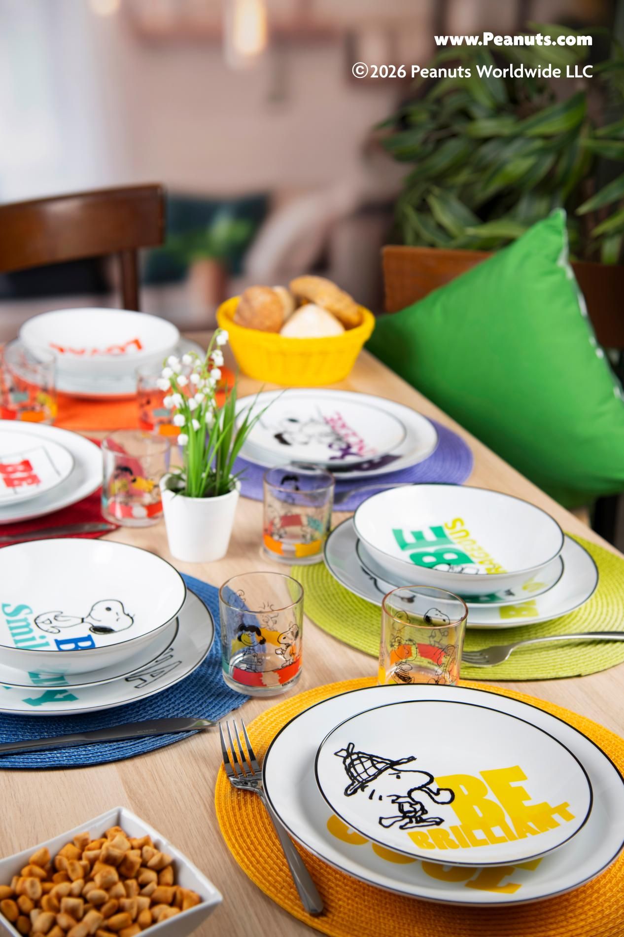 Ogni bicchiere ha la personalizzazione con diversi personaggi Peanuts e può essere abbinato con gli altri prodotti decorati sempre con la gang più famosa dei fumetti.