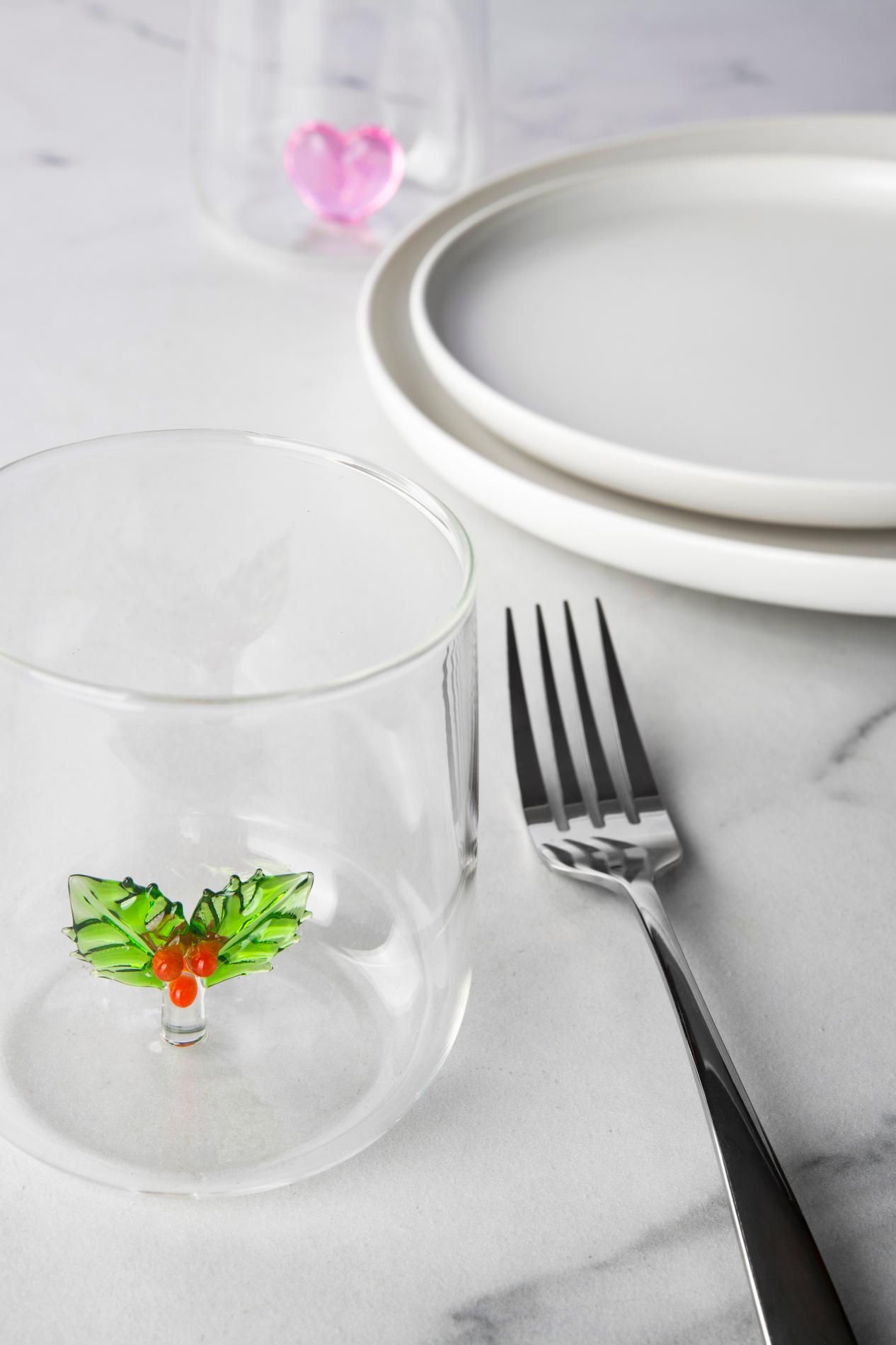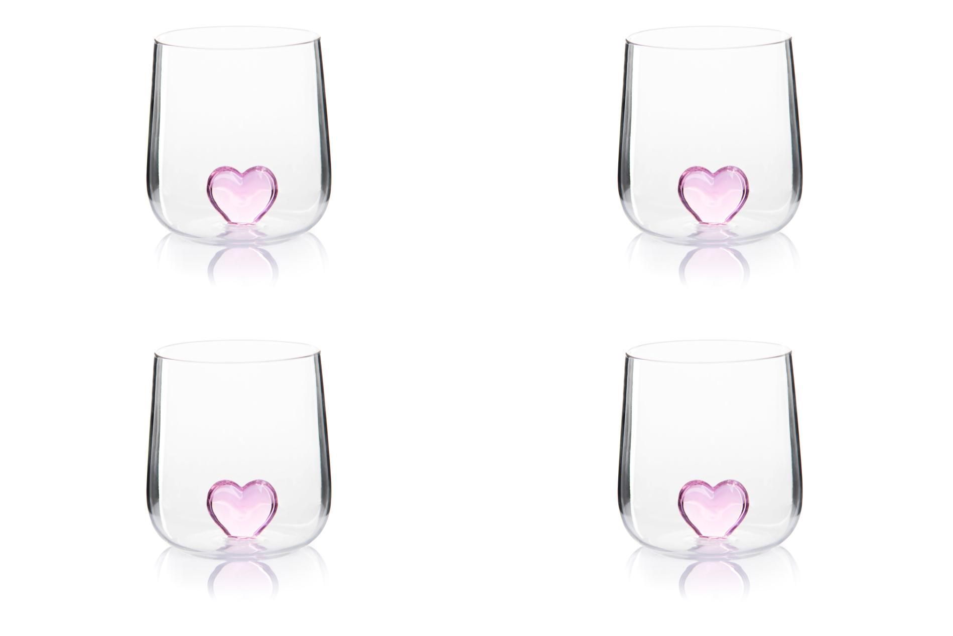 Inside di Excélsa è il set da 4 bicchieri acqua in vetro borosilicato trasparente con cuore rosa, tridimensionale posto all'interno del bicchiere stesso.