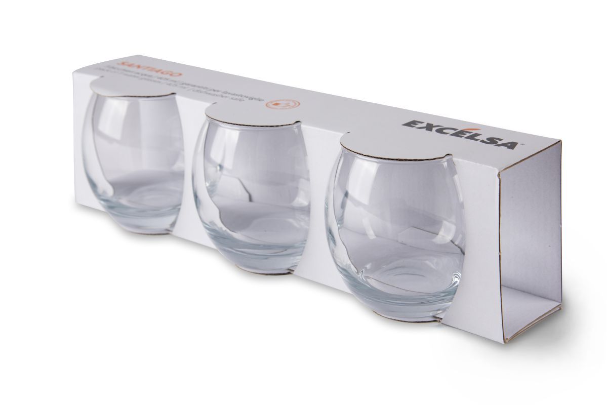 Santiago di Excélsa è il set di 3 bicchieri multiuso da 405 ml. I bicchieri hanno una forma tondeggiante. Data la loro forma i bicchieri non possono essere impilati su se stessi.