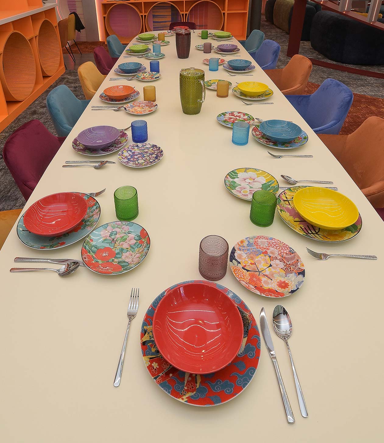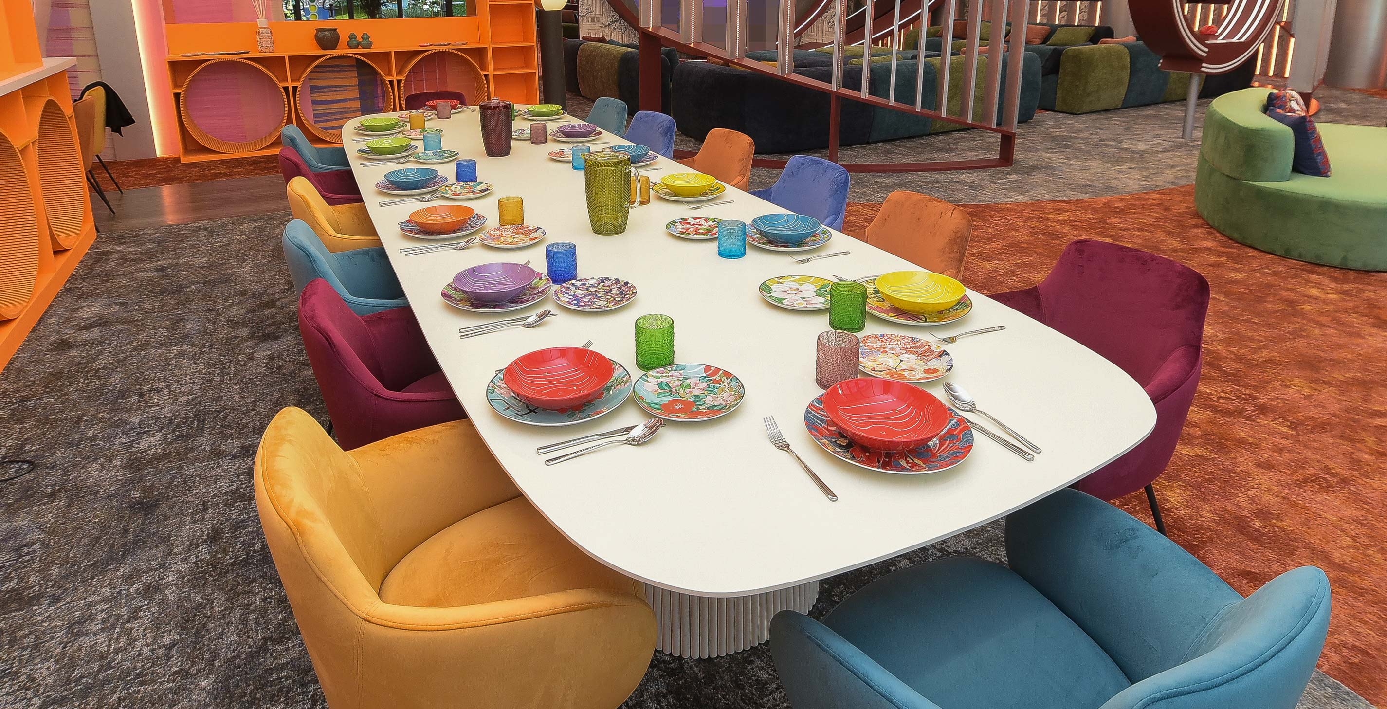 Excélsa con la forza del suo colore e della sua unicità è all'interno della casa più famosa d'Italia con tanti prodotti che puoi acquistare anche tu! Piatti, Bicchieri, Posate, Poltrone, Pouf, Cuscini Arredo e altro!