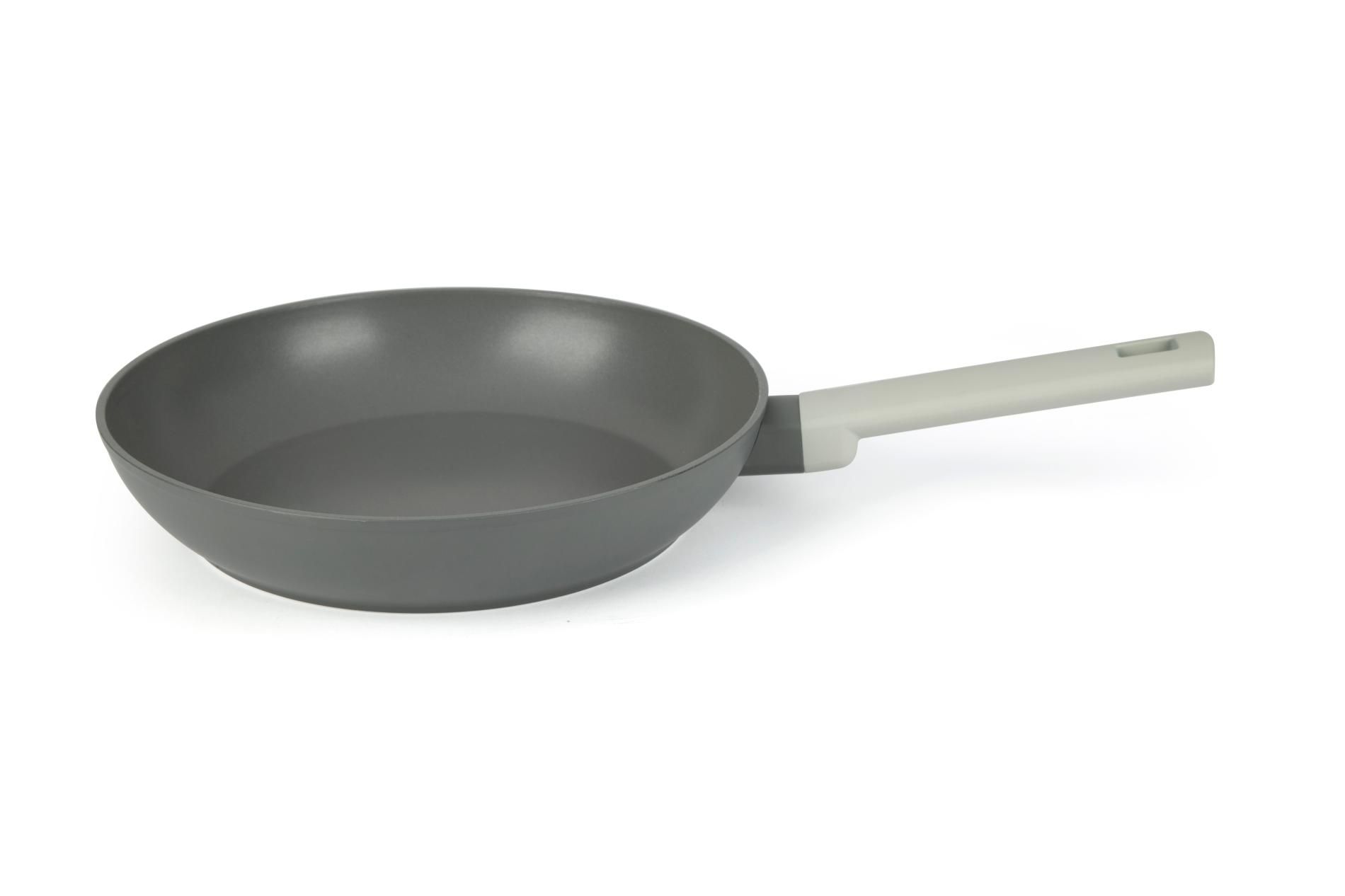 Nordic Grey di Excélsa è la padella in alluminio forgiato con rivestimento antiaderente PFAS free. Il suo manico garatisce una presa solida e sicura grazie all'effetto "soft touch". Il fondo è ideale per induzione full ma anche per fornello a gas tradizionale.