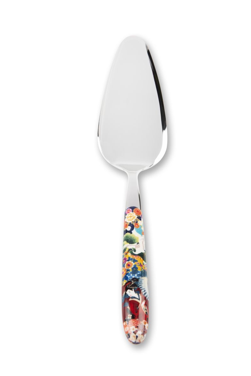 La paletta per dolci Kimono ti permette di tagliare e servire dessert al cucchiaio durante pranzi e cene. La paletta ha una manicatura personalizzata con l'omonima fantasia orientale e può essere coordinata con gli altri prodotti della stessa serie.