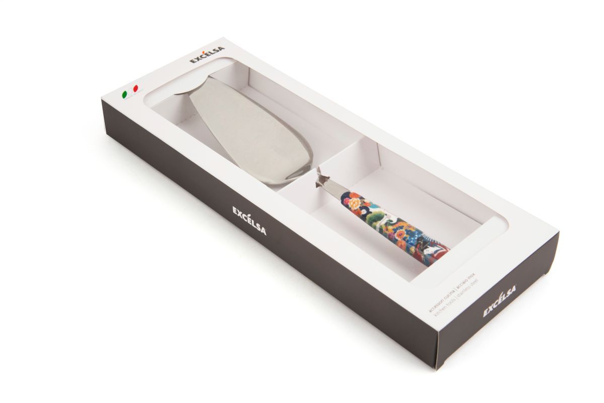 La paletta ha la parte a servire in acciaio inox. La paletta è contenuta in una scatola vetrina litografata perfetta per diventare un gradito regalo. Articolo prodotto e confezionato in Italia.