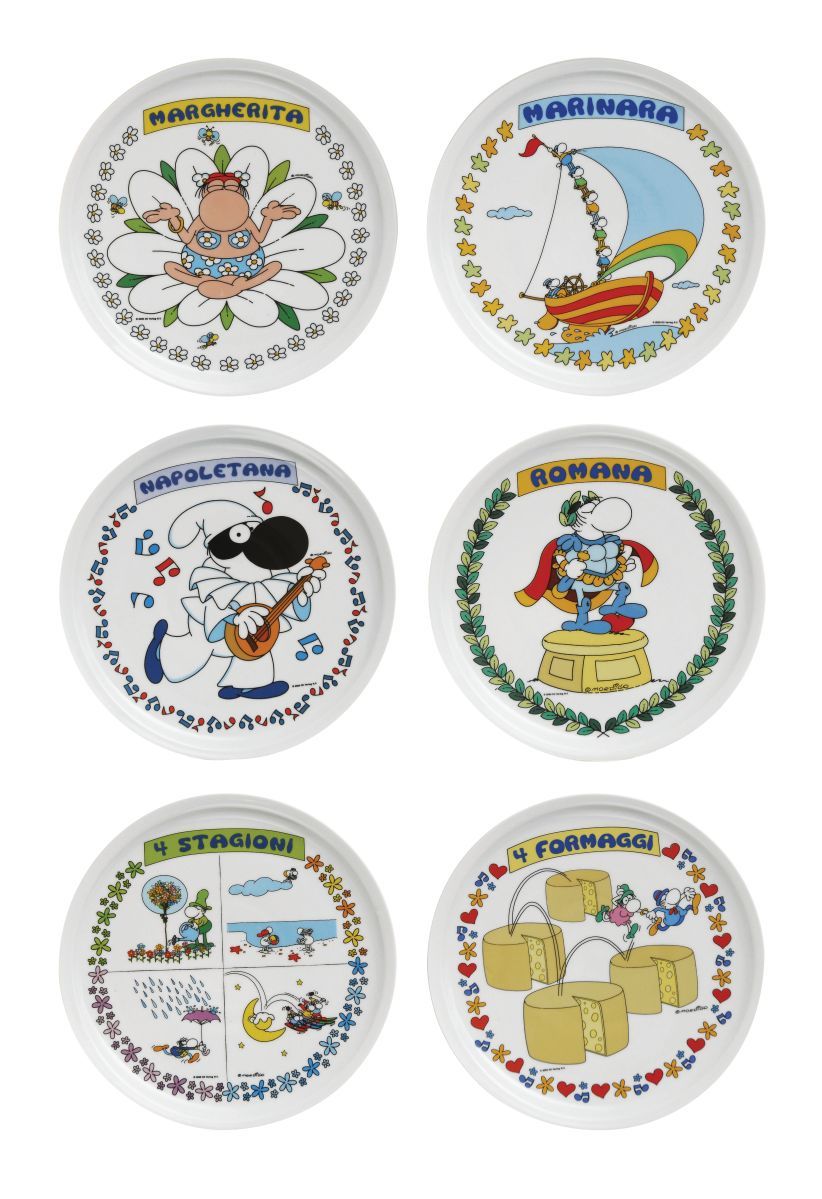 I piatti posso essere lavati a mano, in lavastoviglie e sono adatti per il microonde. Le fantasie di questa serie di piatti pizza sono ispirate alla tradizione italiana e alle ricette più note: 4 stagioni, napoletana, margherita, romana, marinara e 4 formaggi.