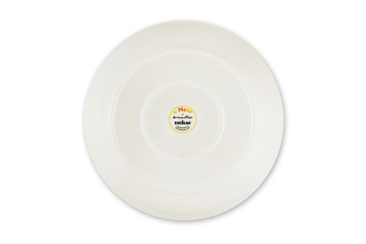 I piatti pizza Mordillo di Excélsa sono venduti in set da 6 pezzi con decorazioni e soggetti differenti. Ogni piatto ha un diametro di 30 cm e può accogliere una pizza di dimensioni standard.
