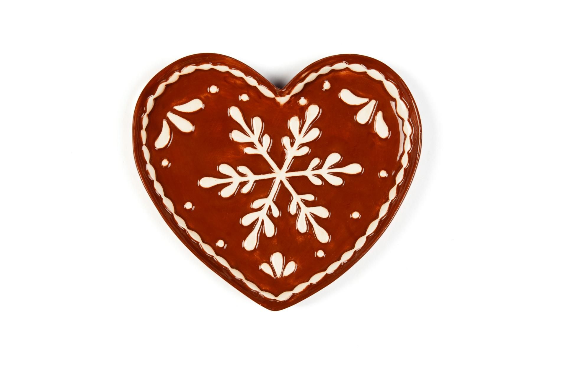 Il piatto a servire a forma di cuore della collezione Woderful Ginger è perfetto per la tavola natalizia e invernale. La sua forma e la decorazione ricordano i biscotti pan di zenzero decorati con la glassa di zucchero.