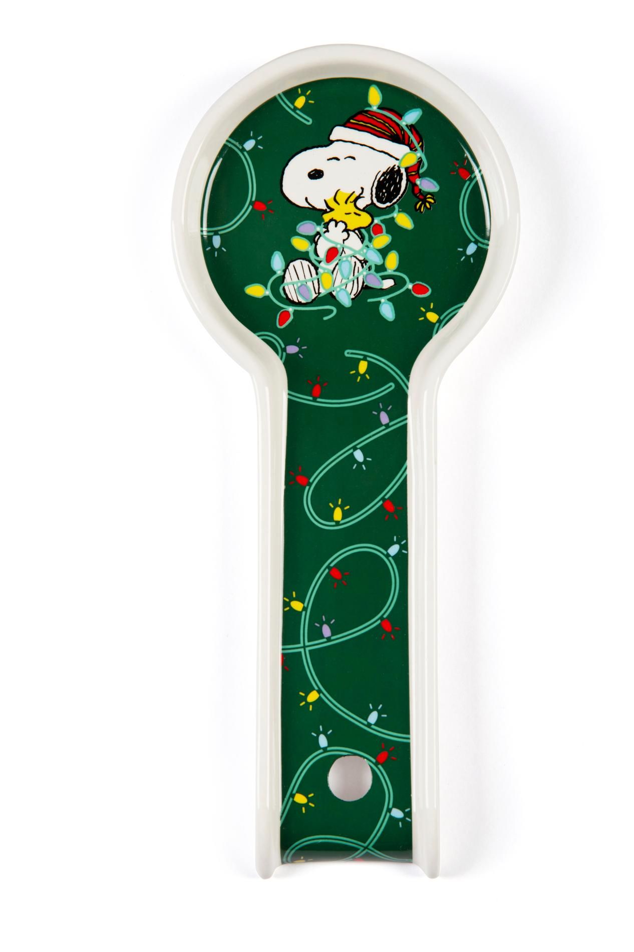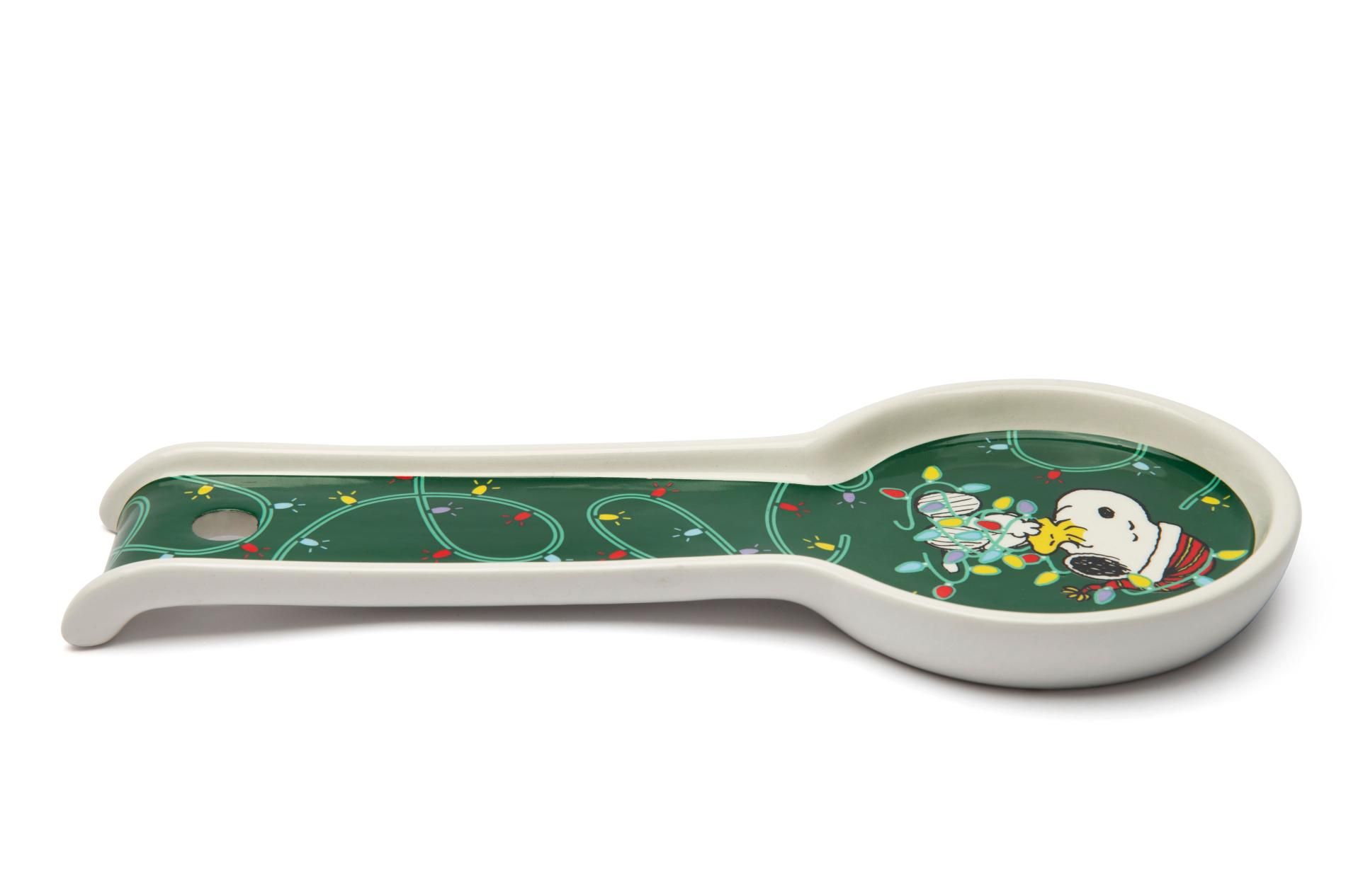 Il posamestolo ha una forma classica, personalizzato con grafica Shiny & Bright con Snoopy, è l'accessorio irrinunciabile in cucina durante la preparazione di pranzi e cene natalizie.