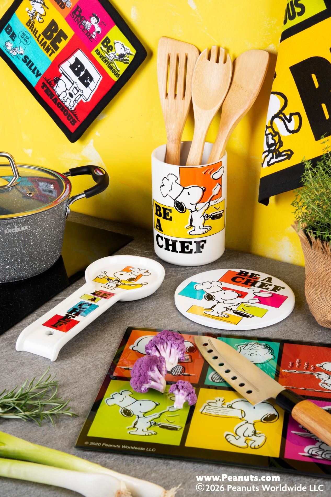 Completa la collezione di tessili cucina abbinando la presina Peanuts agli altri accessori in coordinato.