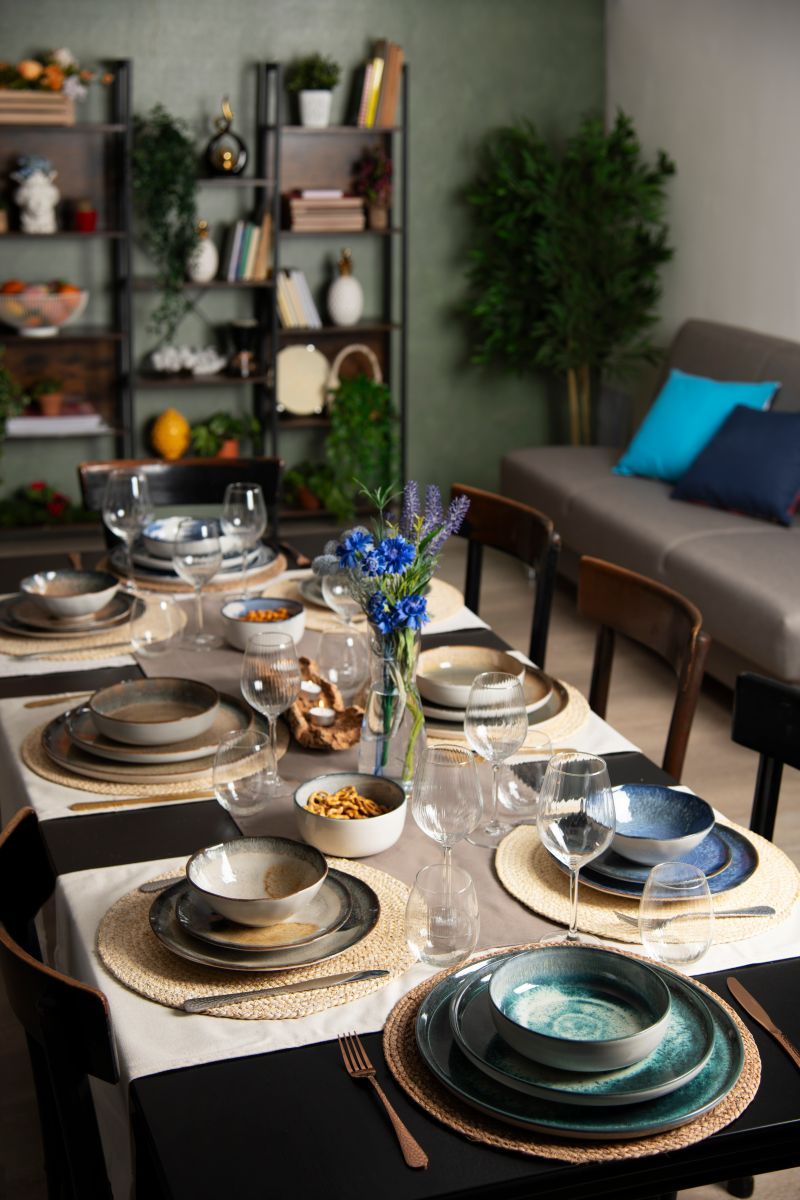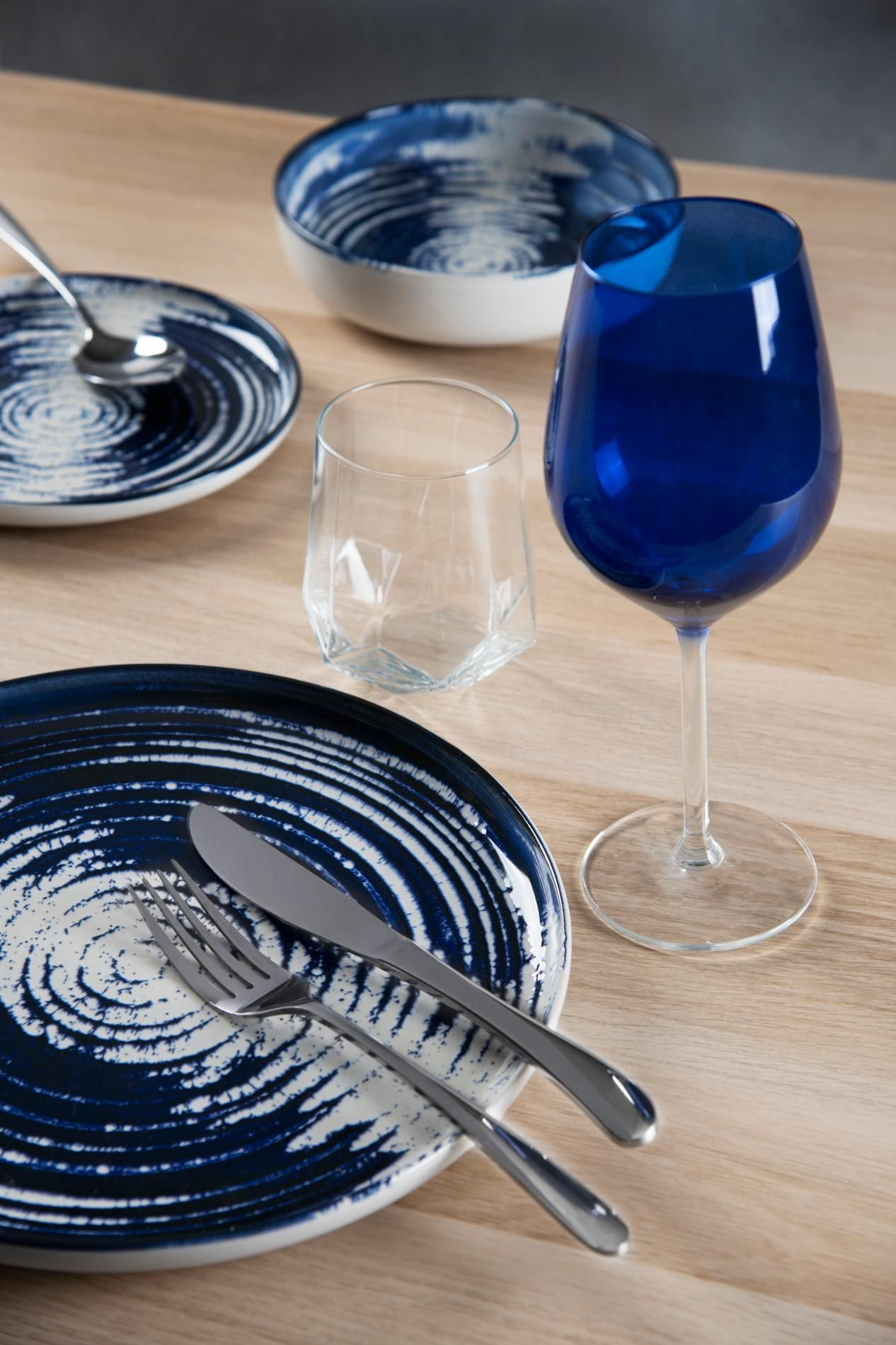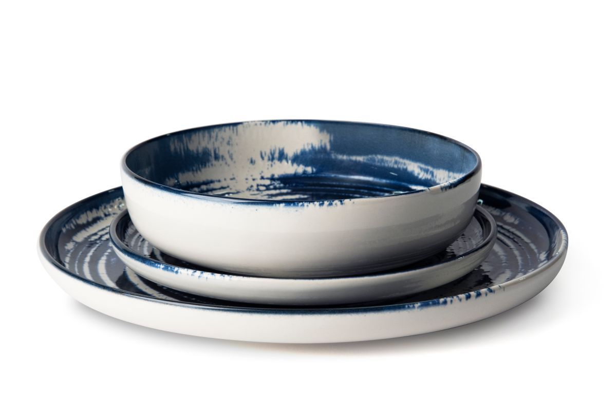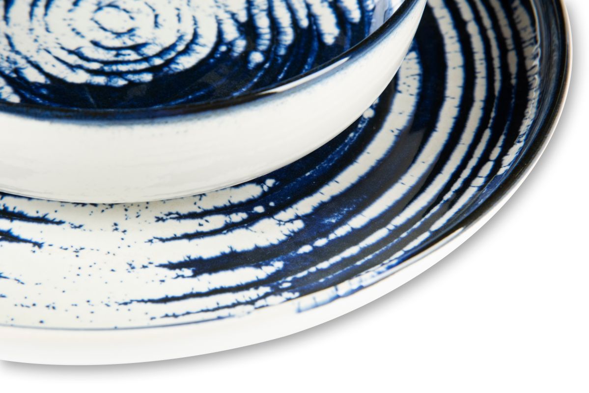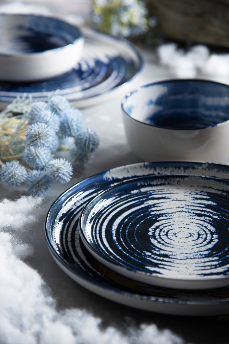 Ermes di Excélsa è il servizio piatti in ceramica, effetto artigianale, con decoro digitale lucido. La forma di ogni piatto e la decorazione a contrasto con mix di toni blu scuro e bianco ghiaccio rendono il set Ermes perfetto per una tavola moderna e attuale, anche per la casa al mare.