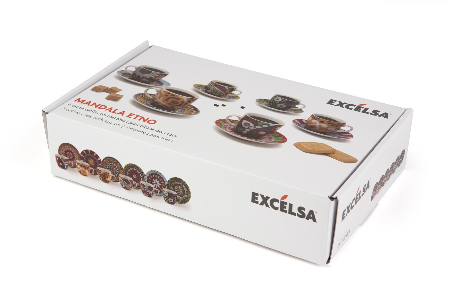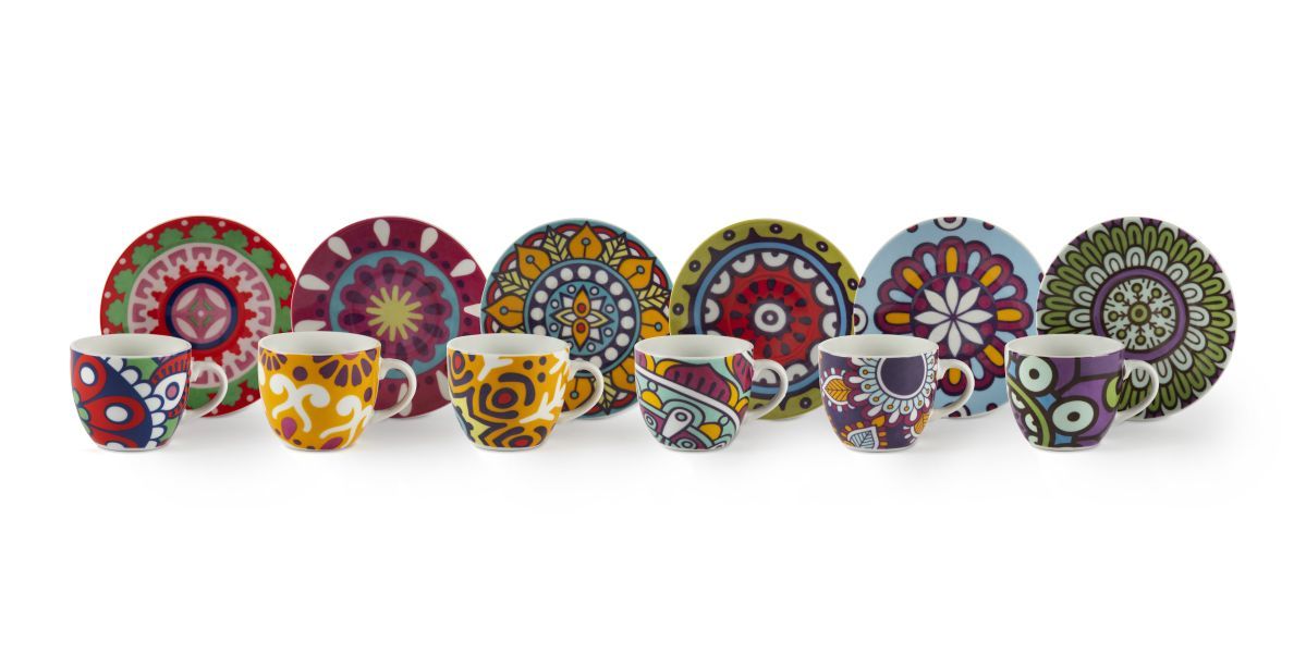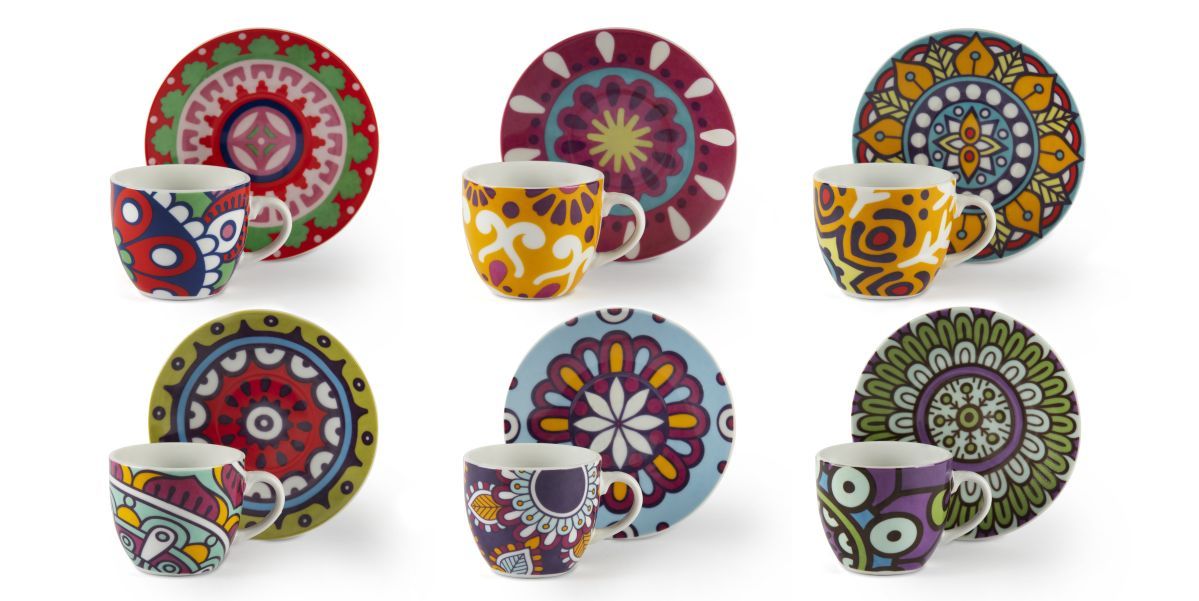 Le tazzine per caffè espresso Mandala Etno di Excélsa sono vendute in set da 6 pezzi con piattino incluso.