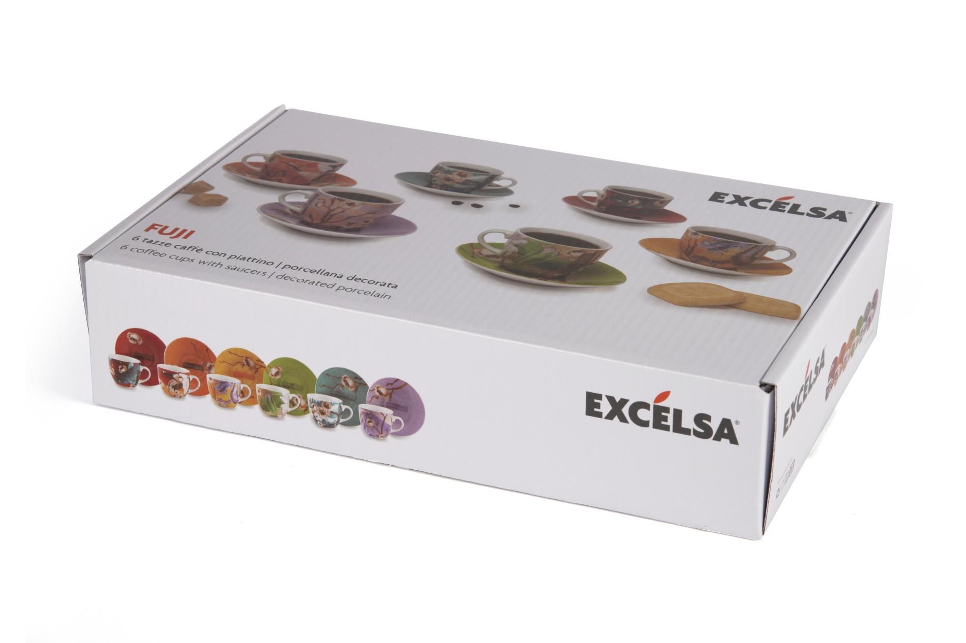 Le tazzine per caffè espresso Fuji di Excélsa sono vendute in set da 6 pezzi con piattino incluso.