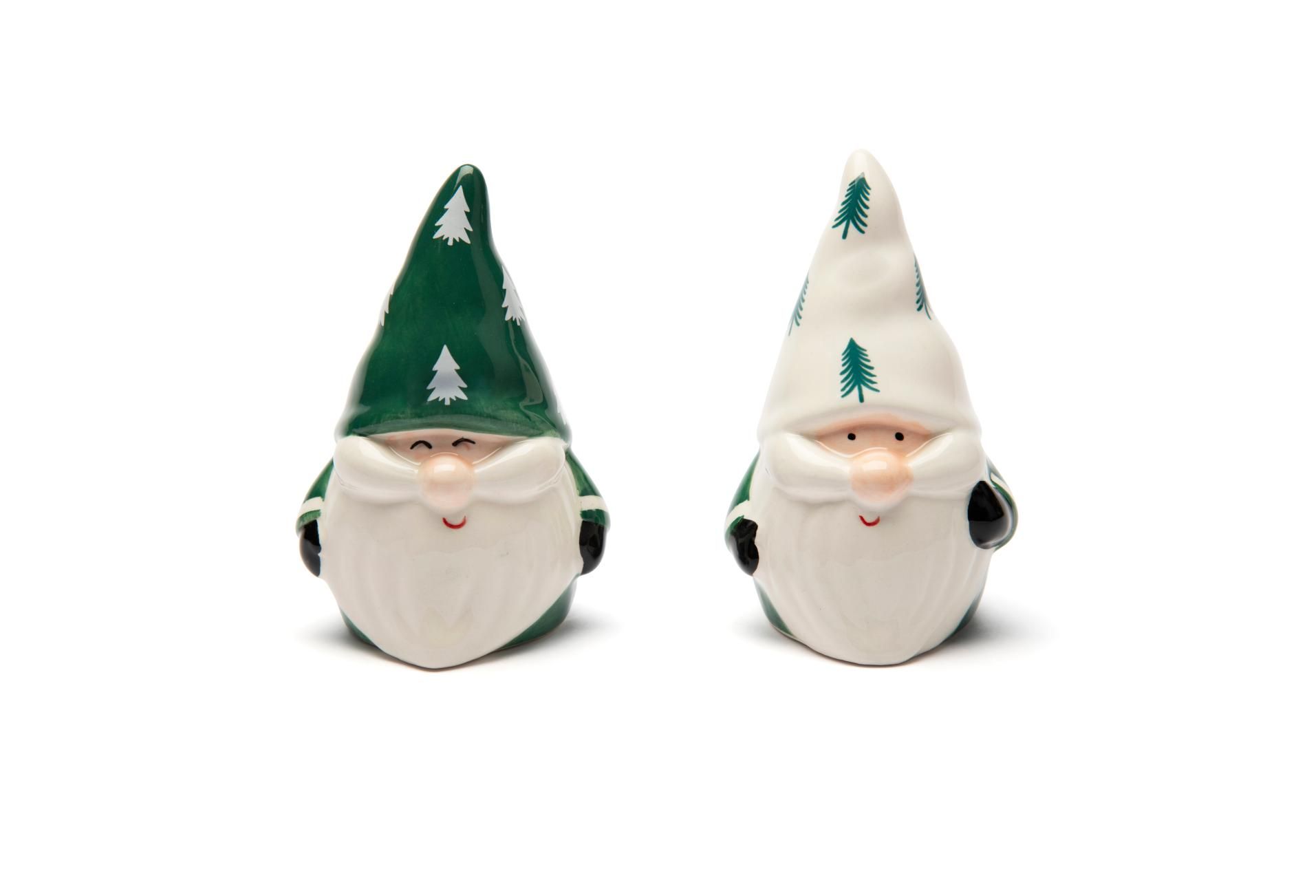 Il set sale e pepe della collezione Green Winter si compone di una coppia di simpatici Gnomi in ceramica dipinta a mano. Colorati e divertenti rallegreranno la tavola delle feste e saranno sempre pronti a dispensare ai commensali sale fino e pepe in polvere.