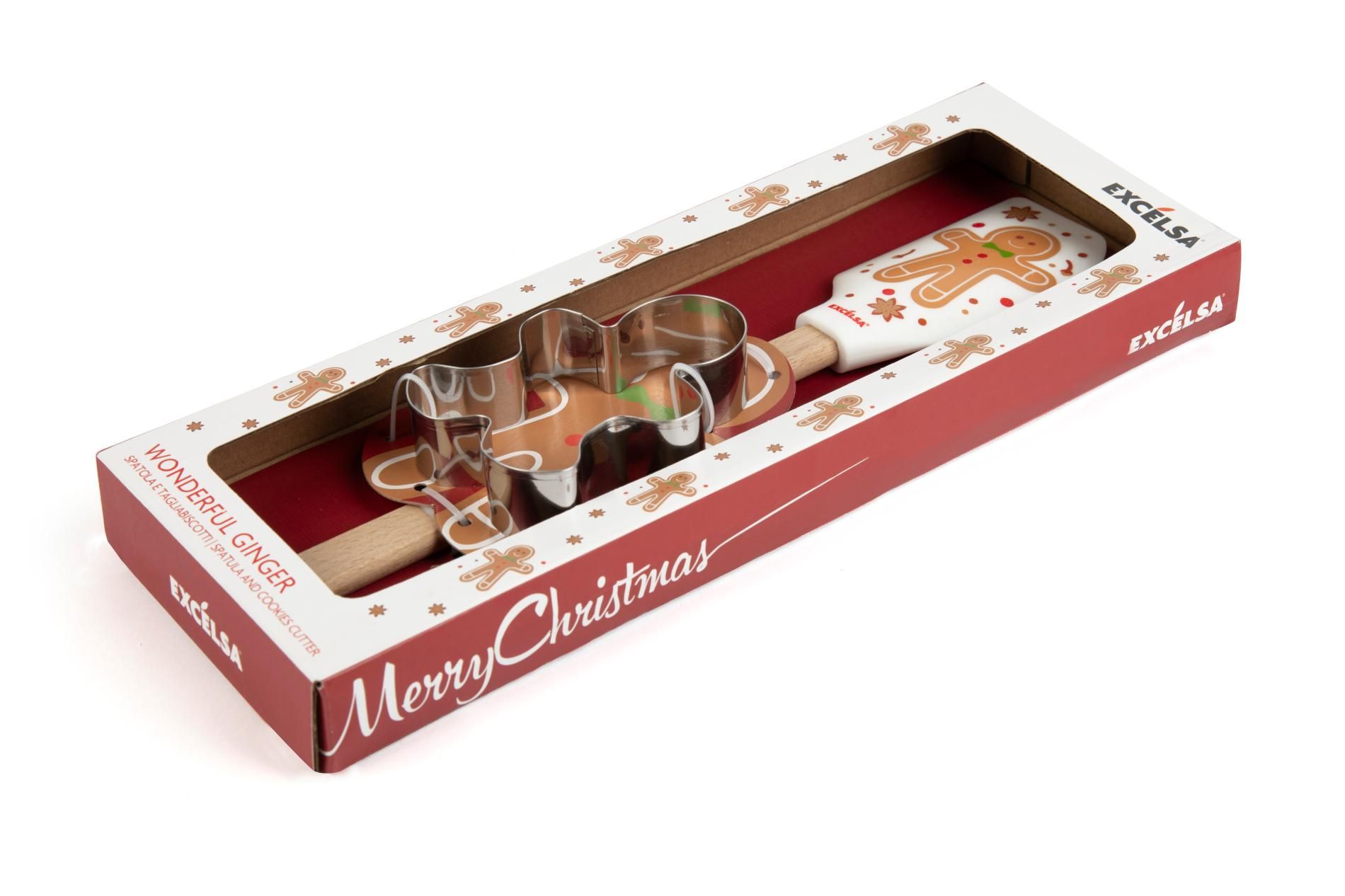 Il set spatola e taglia biscotti Wonderful Ginger è il regalo utile per le prossime festività. Il set è confezionato in scatola vetrina litografata e, aggiungendo un semplice fiocco, diventerà un dono regalo.