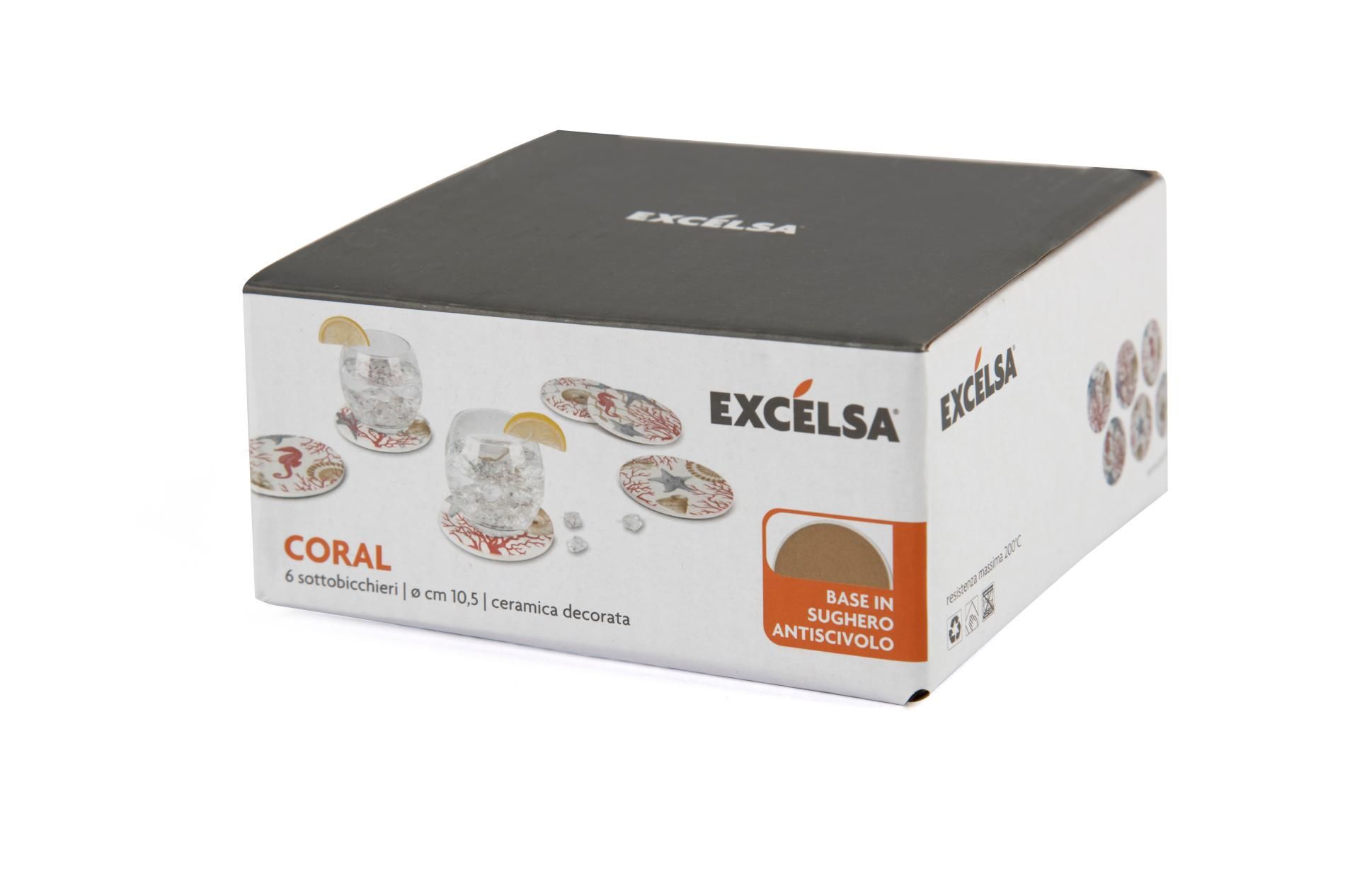 Il set da 6 pezzi di sottobicchieri Coral di Excélsa è il dettaglio per la tua tavola che può fare davvero la differenza. Ogni pezzo, in ceramica, può essere appoggiato sotto ad ogni bicchiere per proteggere la tovaglia da possibili macchie di vino o acqua. Ogni sottobicchiere è decorato con motivo conchiglie e coralli, perfetto per la casa al mare o la tavola estiva. Il diametro è di 10,5 cm cadauno.