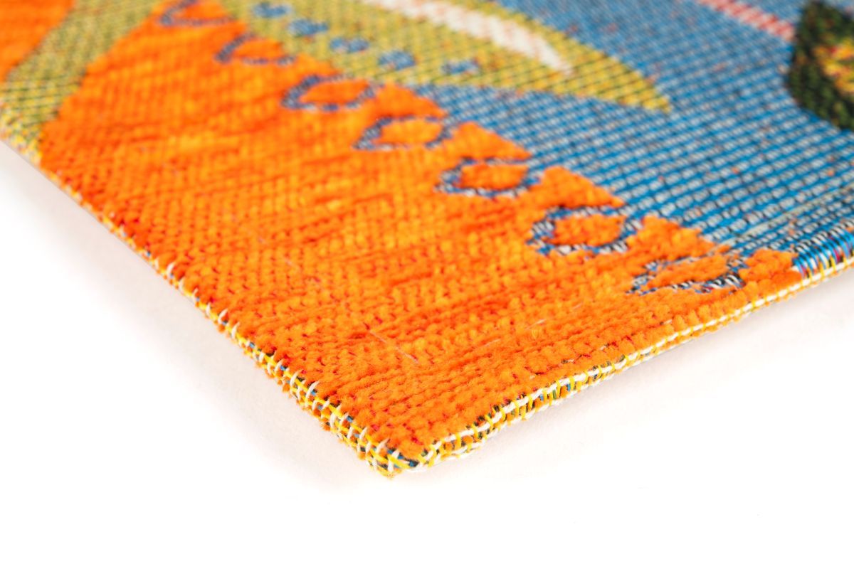 Coloratissimo e coordinabile agli altri prodotti della collezione Gipsy Soul, questo tappeto è caratterizzato da una tecnica di tessitura jacquard, ossia fili tinti intrecciati che creano una preziosa fantasia che richiama uno stile floreale. Durante la lavorazione sono stati aggiunti dei colori acrilici al filato di ciniglia per dare alla texture maggiore profondità e saturazione.