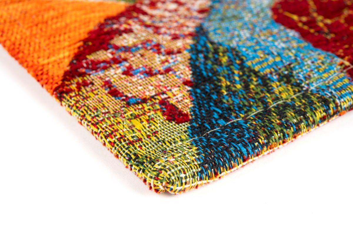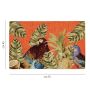 Colorato e coordinabile agli altri prodotti della collezione Havana, questo tappeto è caratterizzato da una tecnica di tessitura jacquard, ossia fili tinti intrecciati che creano una preziosa fantasia con uccelli che richiama lo stile tropicale. Durante la lavorazione sono stati aggiunti dei colori acrilici al filato di ciniglia per dare alla texture maggiore profondità e saturazione.