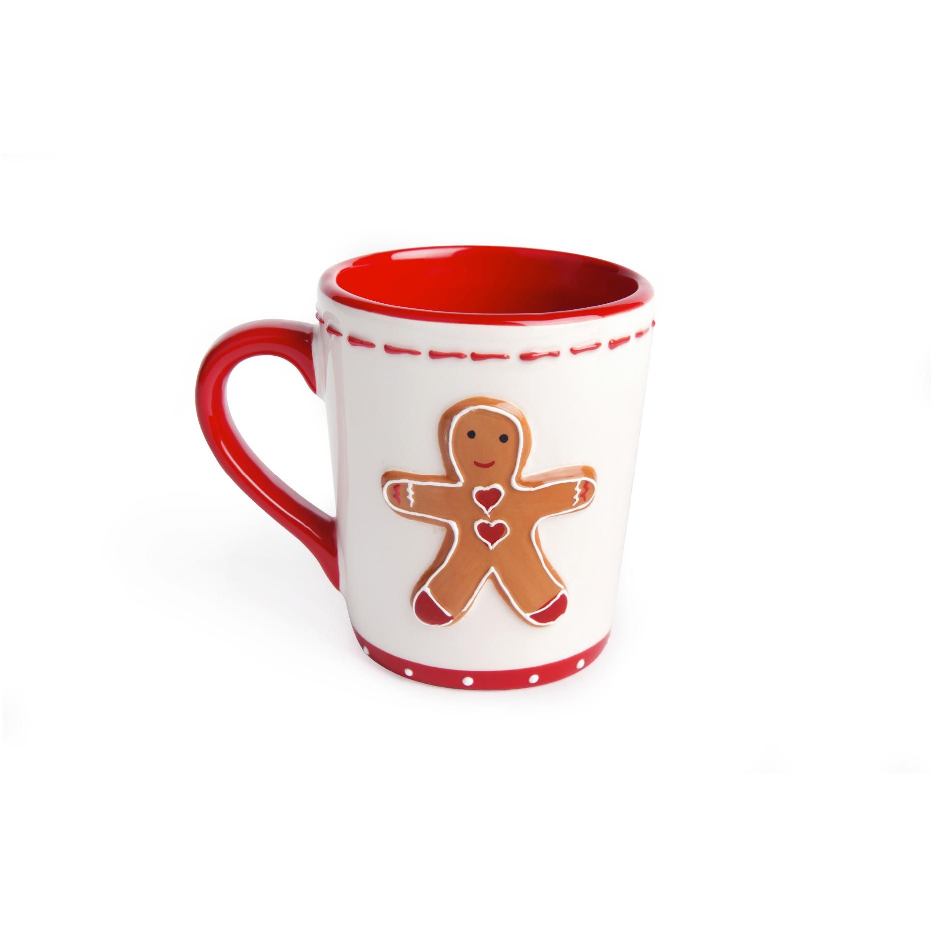 Il set da 4 pezzi di tazze tipo mug è personalizzato con la fantasia natalizia Ginger Boy&Girl di Excélsa. Simpatici biscottini pan di zenzero allieteranno la tua prima colazione. Ogni tazza ha una capienza di 380 ml.