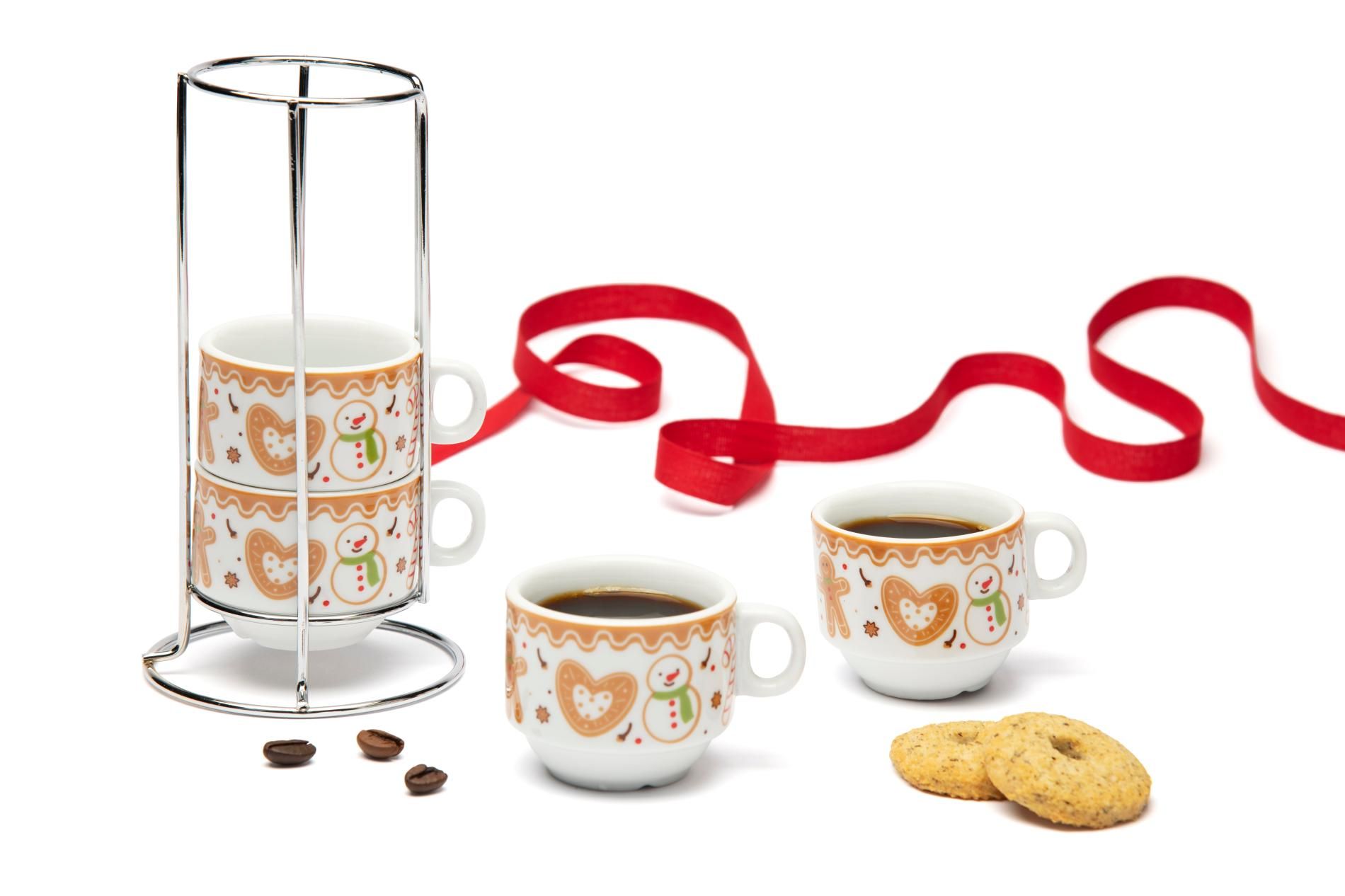 Tazzine caffè, 4 pezzi, con supporto, porcellana