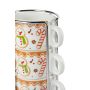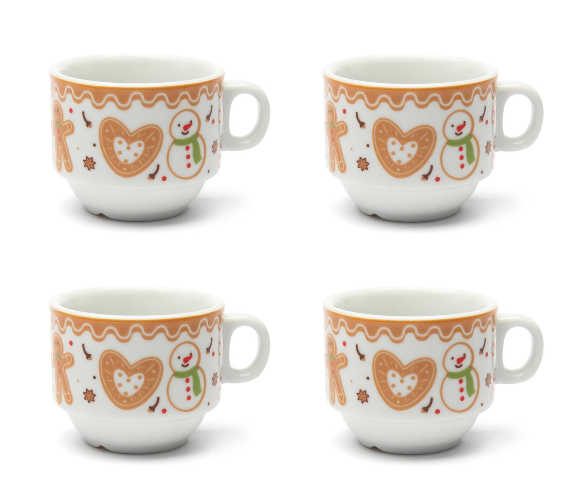 Le tazze hanno una fantasia allegra caratterizzata da personaggi iconici del periodo invernale come il pupazzo di neve, l'omino pan di zenzero, i fiocchi di neve. Sono perfette per la casa in montagna da vivere tutto l'anno ma anche per la stagione invernale/natalizia.