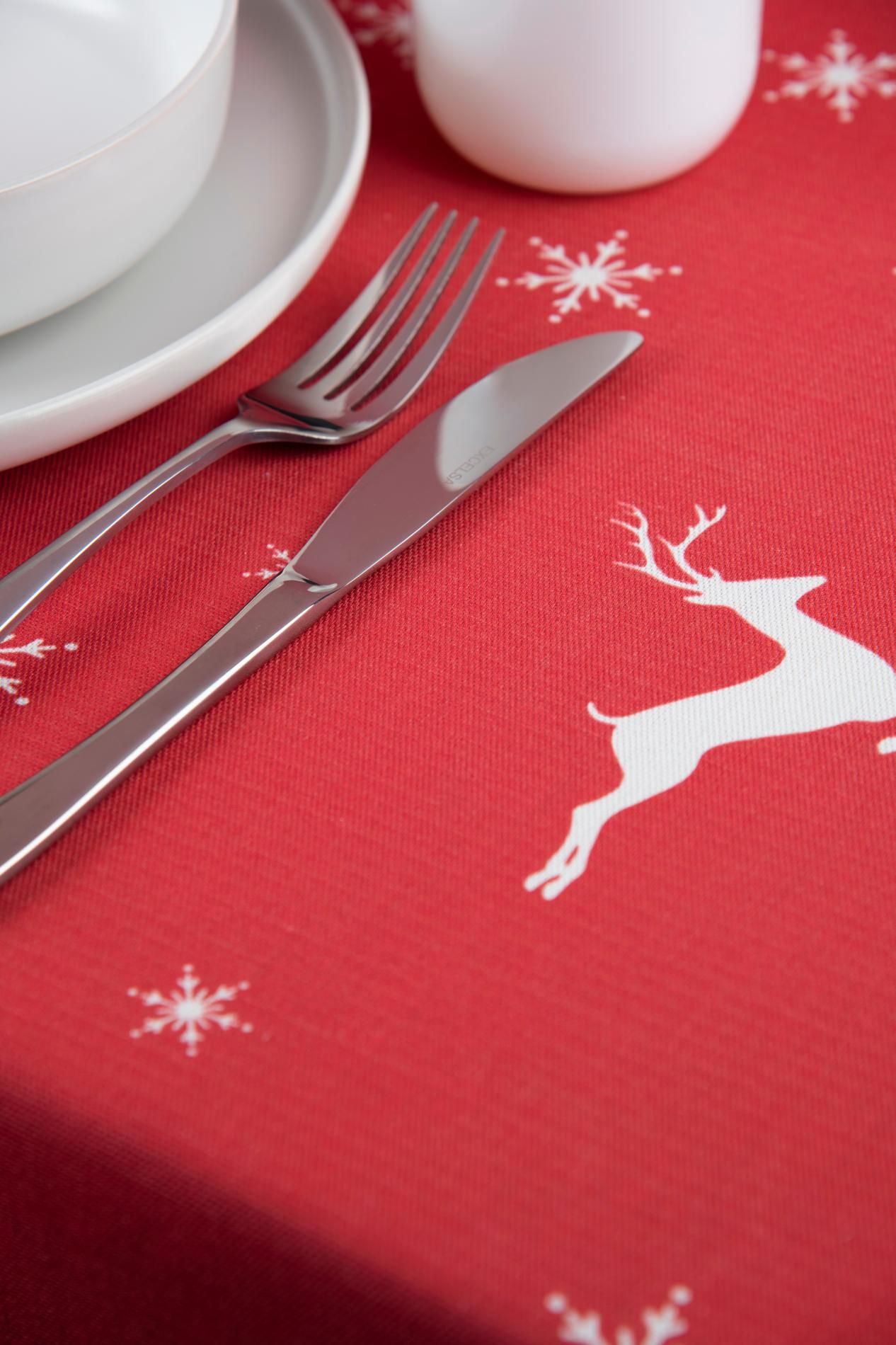 - Tovaglia, natalizia, rossa, con renne, 140x240 cm
