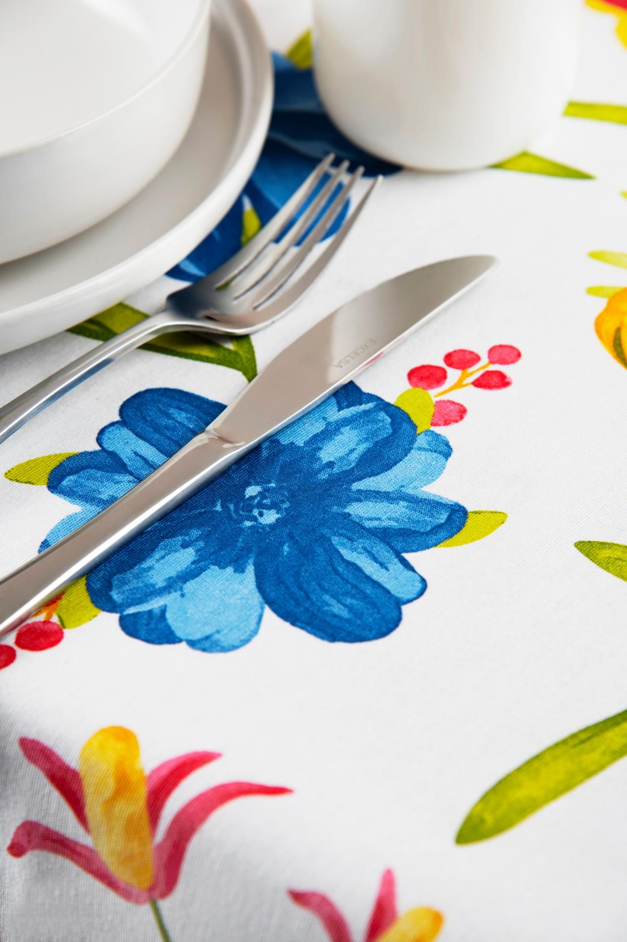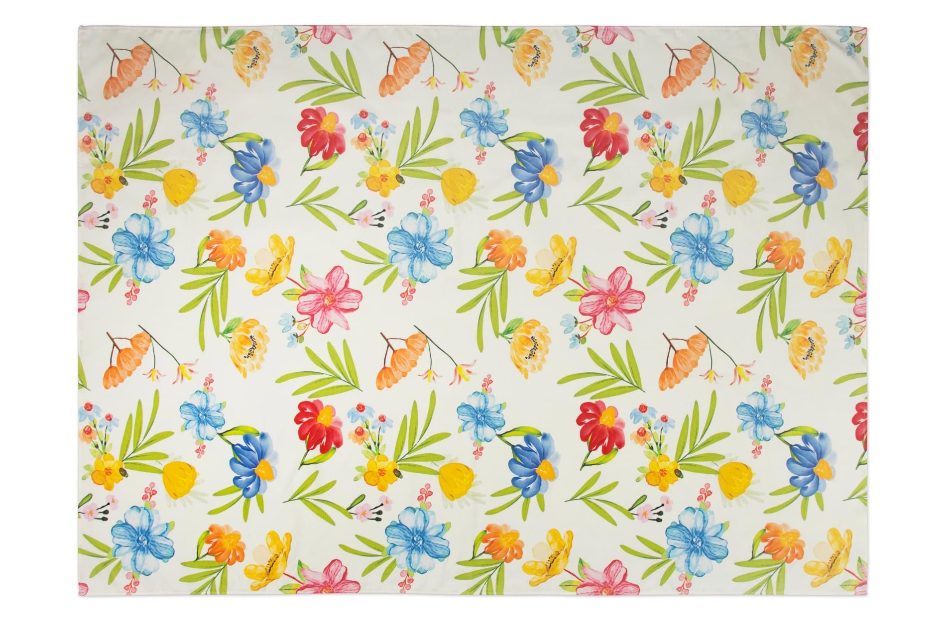 Stendi la tovaglia Blooming sul tuo tavolo da pranzo e rivivi l'atmosfera primaverile di campi di fiori colorati.