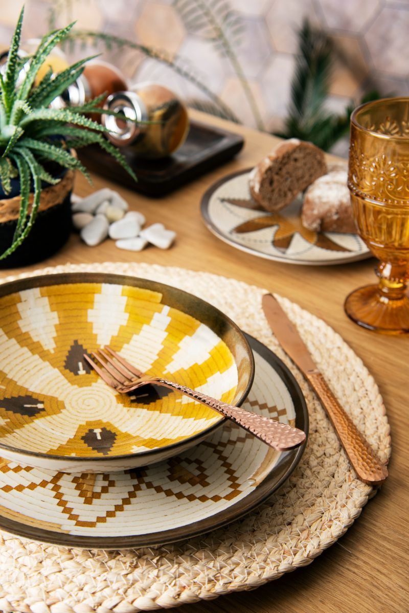 La tovaglietta americana Green Living color crema è di forma tonda color crema. La sua composizione vegetale, in foglia di mais, ne conferisce un aspetto naturale e perfetto per una mise en place country chic.