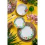 La tovaglietta americana Green Living color marrone è di forma tonda color crema. La sua composizione vegetale, in foglia di mais, ne conferisce un aspetto naturale e perfetto per una mise en place country chic.